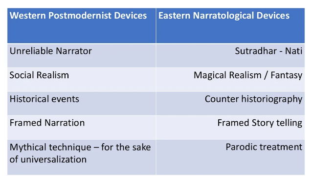 Rushdie has used very unique style like Western Postmodern Devices And Indian (Eastern)